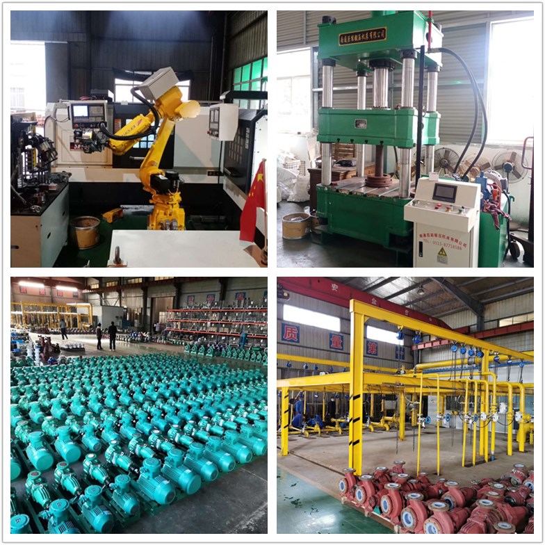 IHF single-stage single-suction horizontal fluorine plastic centrifugal pump is according to the international standard and combined with non-metallic pump design and manufacturing process. Pump body adopts metal shell lining fep (F46, PFA), pump cover, impeller and shaft sleeve arc fluorine plastic with metal insert outsourcing whole sintering suppression and become, shaft seal mounted outside using advanced bellows mechanical seal, static choose 99.9% alumina or silicon carbide rings, ring with four fluorine filling materials, its excellent corrosion resistant seal, Import and export of pump adopts cast steel reinforcement, in order to enhance the bearing gentle pressure on the performance of the pump. Practical use shows that the pump has corrosion resistance, abrasion resistance, high temperature resistant, not aging, high