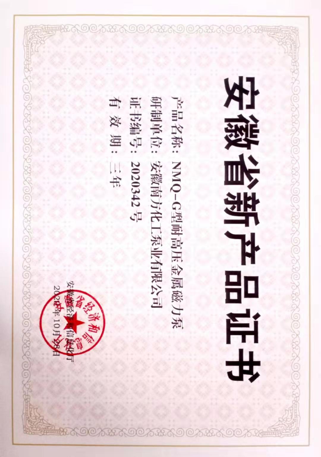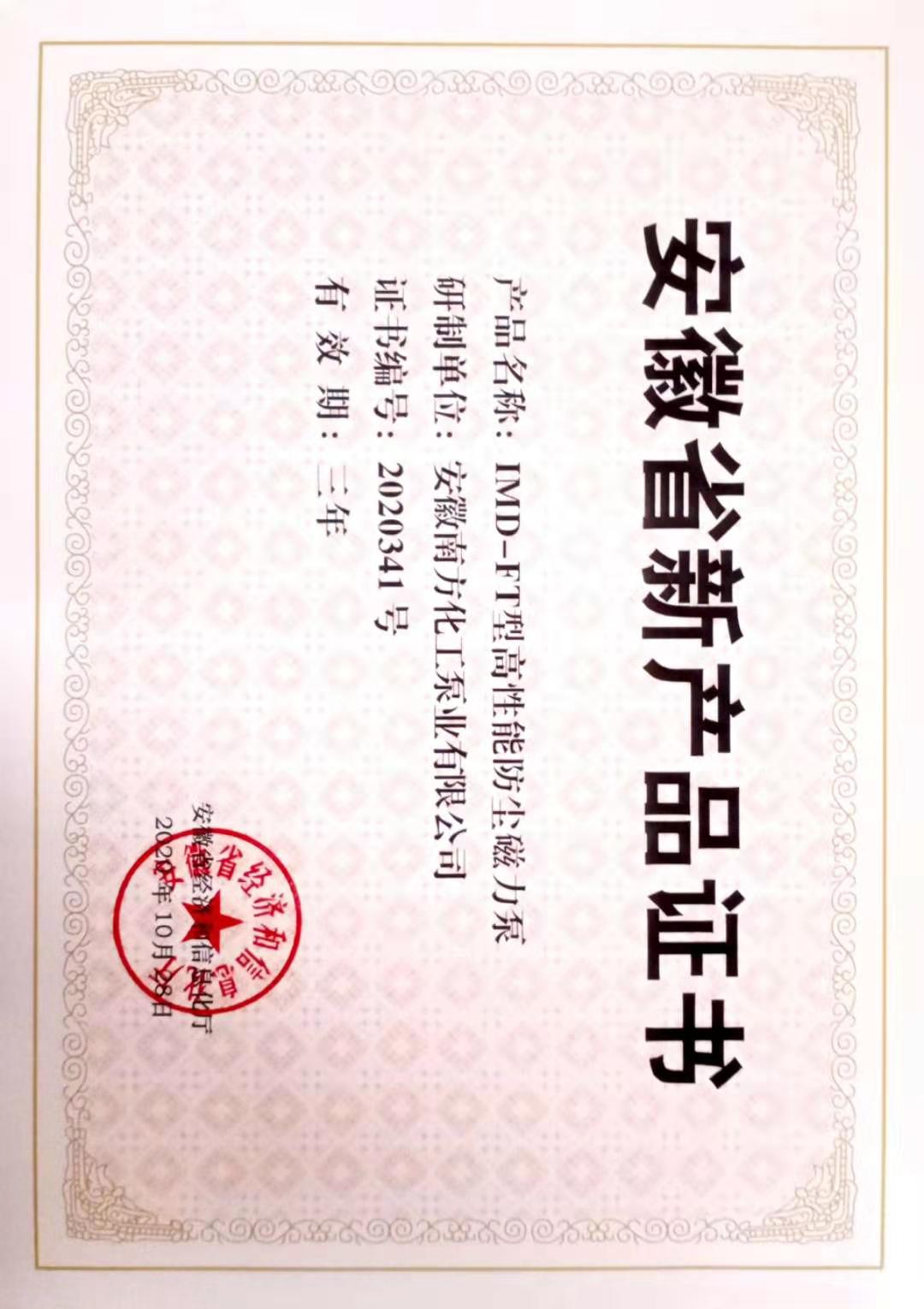 熱烈祝賀南方化工泵業(yè)榮獲新產(chǎn)品證書