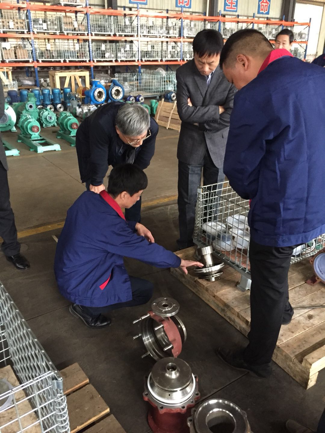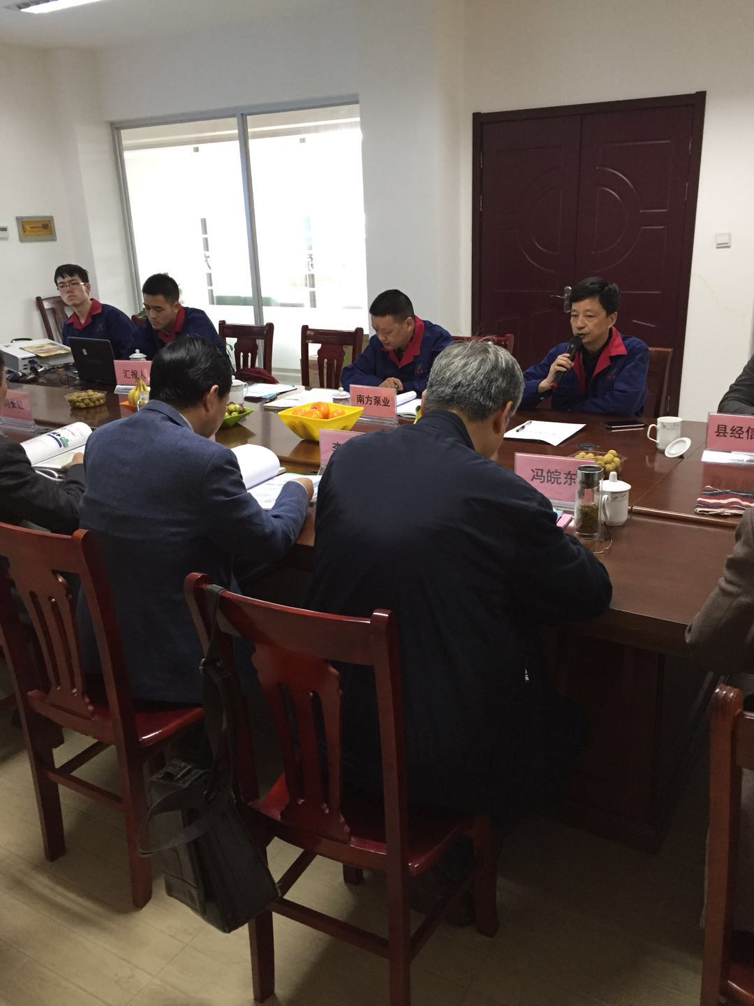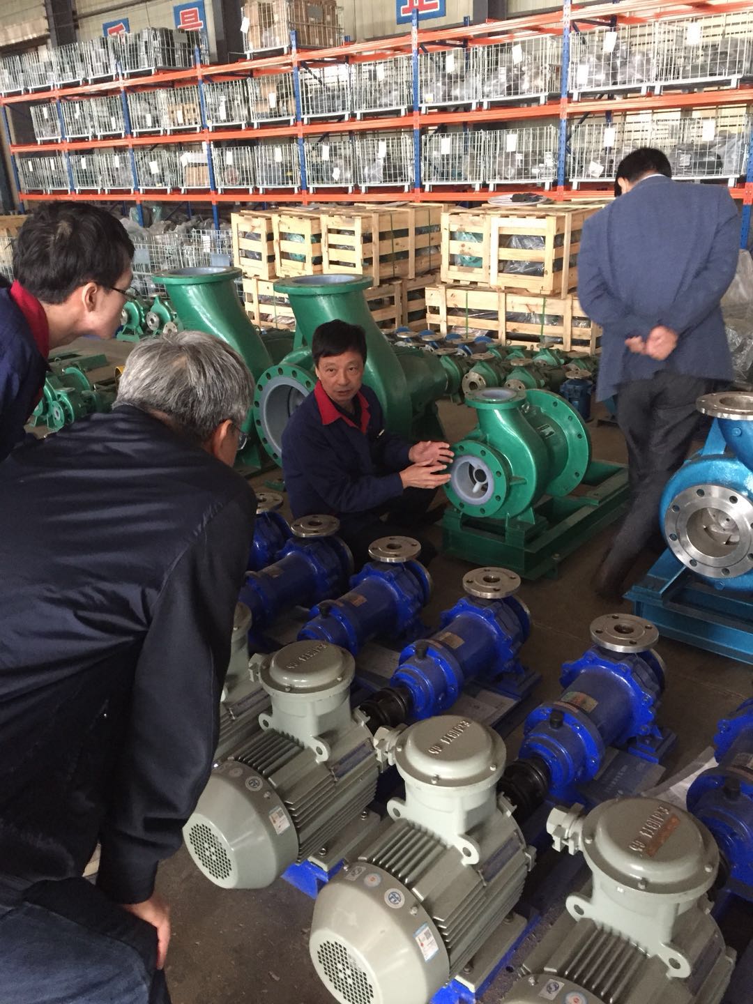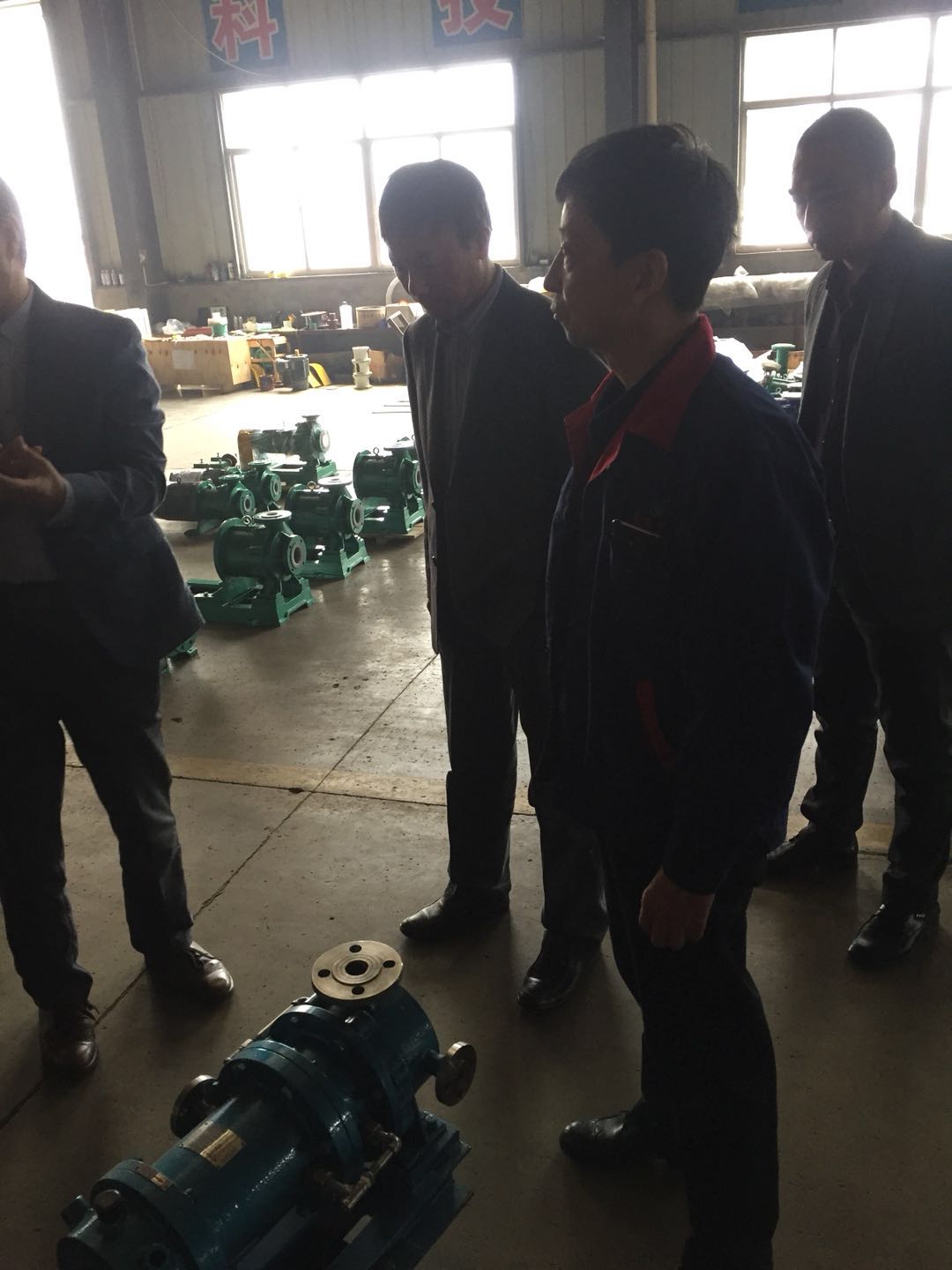安徽南方化工泵業(yè)董事長(zhǎng)潘耀東先生帶領(lǐng)公司技術(shù)人員匯報(bào)新產(chǎn)品