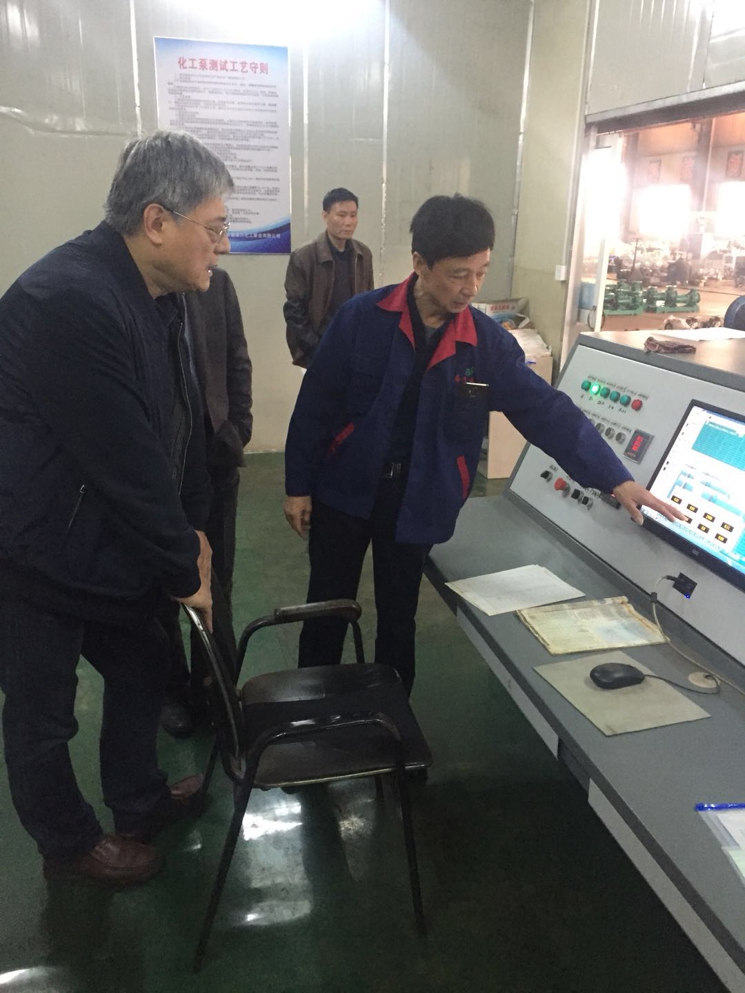 新產(chǎn)品鑒定會(huì)后潘耀東先生帶領(lǐng)各位專家參觀車間現(xiàn)場(chǎng)