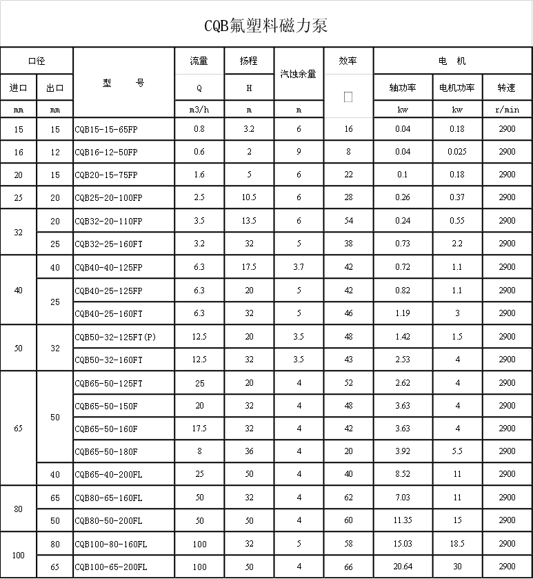 氟塑料磁力泵又稱其為氟塑料磁力離心泵,氟塑料磁力驅(qū)動泵,耐腐蝕磁力化工泵,CQB全塑磁力泵是我公司氟塑料磁力泵中的經(jīng)典結(jié)構(gòu)款型。氟塑料磁力泵另有:長支架型,新升級型,后拉式重型。